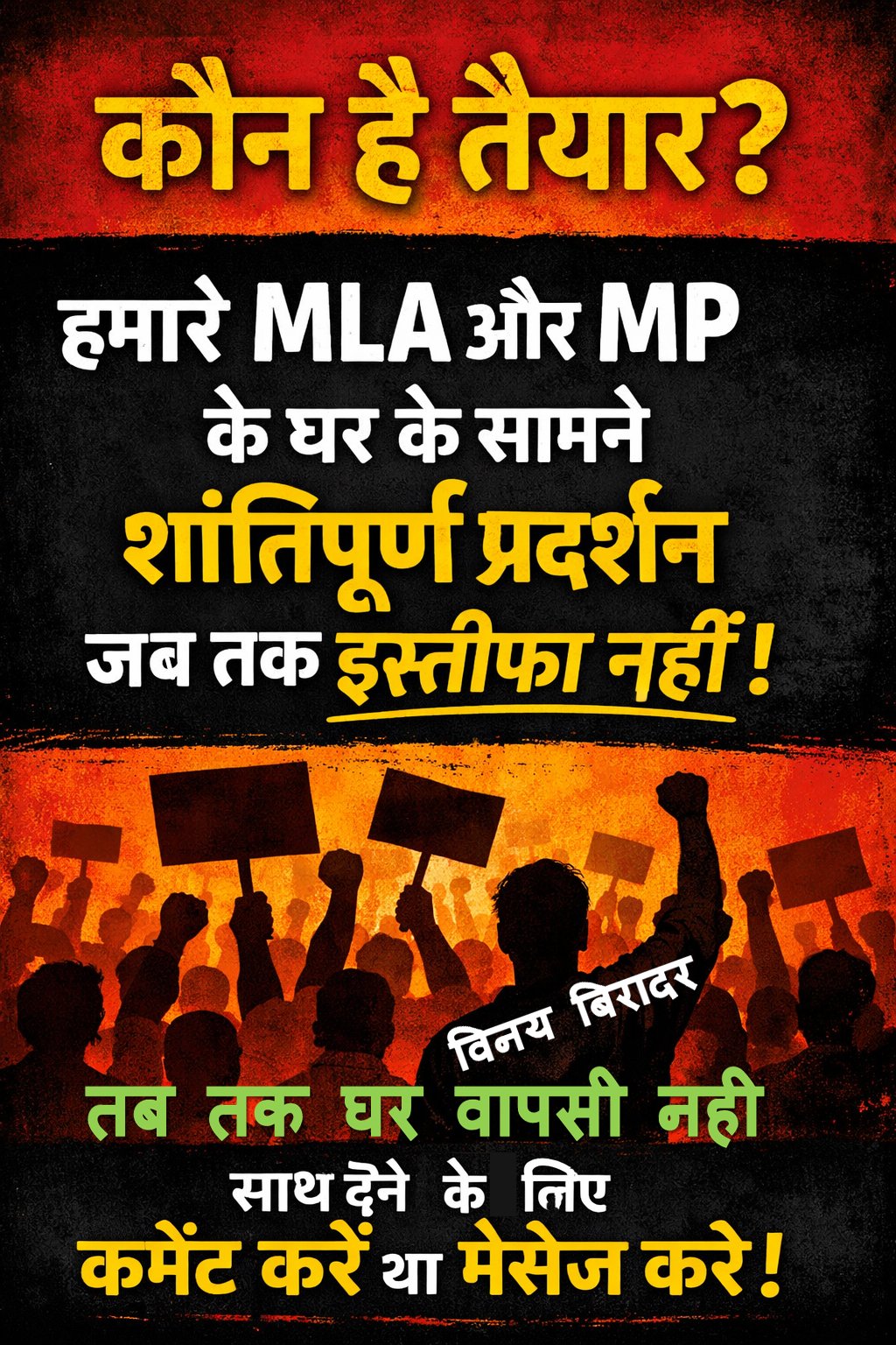 हमारे MLA और MP के घर के सामने शांतिपूर्ण प्रदर्शन किया जाएगा, जब तक हमें उनका इस्तीफा नहीं मिल जाता।