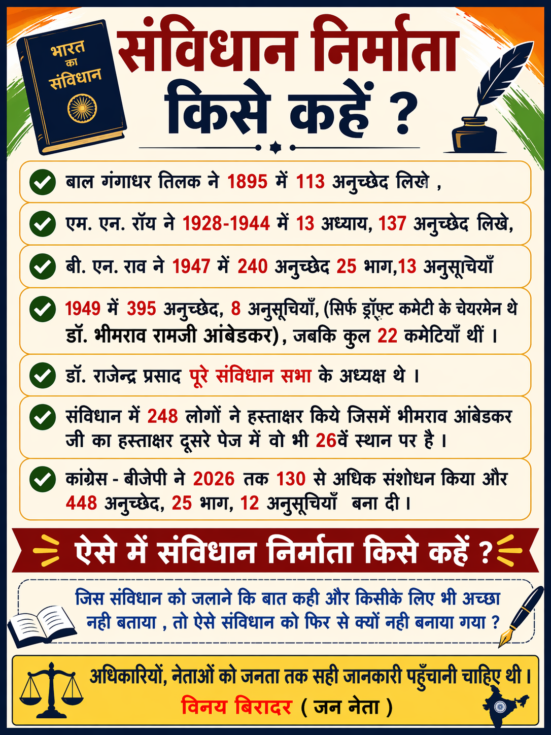 ✔️ 13 अध्याय और 137 अनुच्छेद लिखे .