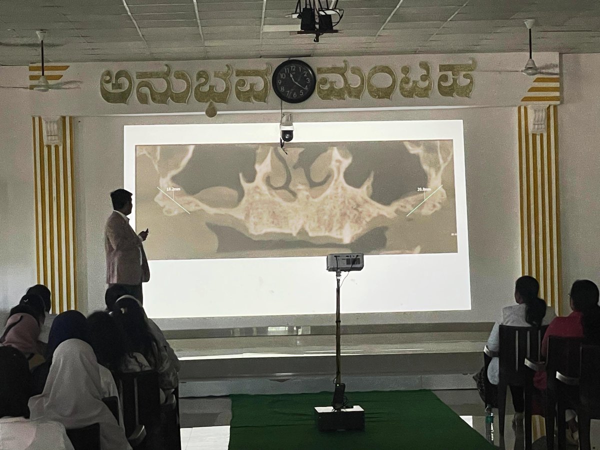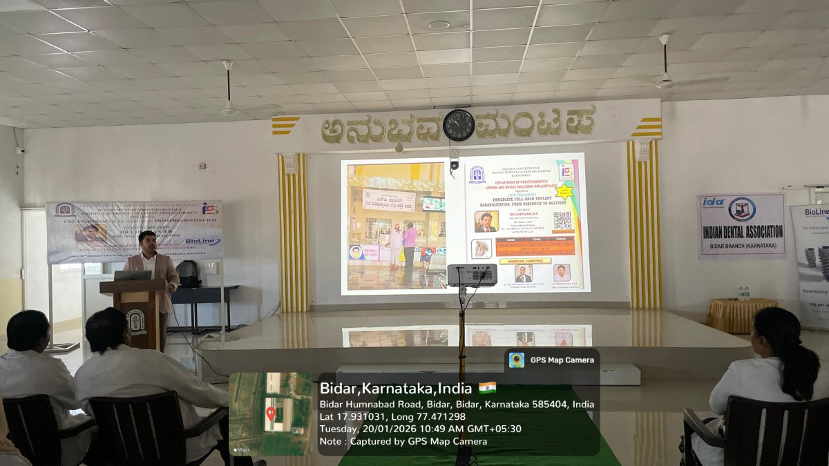 ಎಸ್. ಬಿ. ಪಾಟೀಲ ದಂತ ವಿಜ್ಞಾನ ಮತ್ತು ಸಂಶೋಧನಾ ಸಂಸ್ಥೆಯ ಪ್ರೋಸ್ತೊಡೊಂಟಿಕ್ಸ್ ವಿಭಾಗವು ದಿನಾಂಕ ೨೦ ಜನವರಿ ೨೦೨೬ ರಂದು ಸಂಸ್ಥೆಯ ಅನುಭವ ಮಂಟಪದಲ್ಲಿ ನಿರಂತರ ದಂತ ಶಿಕ್ಷಣ (ಅಆಇ) ಕಾರ್ಯಕ್ರಮವನ್ನು ಯಶಸ್ವಿಯಾಗಿ ಆಯೋಜಿಸಿತು. “Immeಜiಚಿಣe ಈuಟಟ ಂಡಿಛಿh Imಠಿಟಚಿಟಿಣ ಖehಚಿbiಟiಣಚಿಣioಟಿ – ರೋಗನಿರ್ಣಯದಿಂದ ಅಂತಿಮ ವಿತರಣೆವರೆಗೆ” ಎಂಬ ವಿಷಯದ ಮೇಲೆ ಈ ಶೈಕ್ಷಣಿಕ ಕಾರ್ಯಕ್ರಮ ನಡೆಯಿತು. ಕಾರ್ಯಕ್ರಮದ ಸಂಪನ್ಮೂಲ ವ್ಯಕ್ತಿಯಾಗಿ ಮತ್ತು ಮುಖ್ಯ ವಕ್ತಾರರಾಗಿ ಡಾ. ಚೇತನ ಭಾಗವಹಿಸಿದ್ದರು. ಅವರು ಫುಲ್ ಮೌತ್ ರಿಹ್ಯಾಬಿಲಿಟೇಶನ್ ಹಾಗೂ ಇಂಪ್ಲಾAಟಾಲಜಿಯಲ್ಲಿ ಖ್ಯಾತ ತಜ್ಞರಾಗಿದ್ದು, ತಮ್ಮ ವಿಶಾಲ ಅನುಭವ ಮತ್ತು ಜ್ಞಾನವನ್ನು ಉಪನ್ಯಾಸಗಳ ಮೂಲಕ ಹಂಚಿಕೊAಡರು. ಇಂಪ್ಲಾAಟ್ ಚಿಕಿತ್ಸೆಯ ಆಧುನಿಕ ಪರಿಕಲ್ಪನೆಗಳು, ರೋಗಿಯ ಸರಿಯಾದ ಆಯ್ಕೆ, ಚಿಕಿತ್ಸೆ ಯೋಜನೆ, ಶಸ್ತ್ರಚಿಕಿತ್ಸಾ ಹಂತಗಳು ಹಾಗೂ ಅಂತಿಮ ಪ್ರೊಸ್ಥೆಸಿಸ್ ವಿತರಣೆ ಕುರಿತು ವಿವರವಾದ ಮಾಹಿತಿ ನೀಡಲಾಯಿತು.